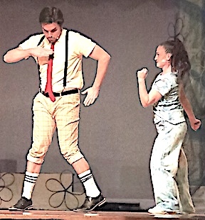 Ben Campbell as Prince Dauntless and Molly Heichel as Princess Winnifred at the center of a dance sequence in "Once Upon a Mattress."