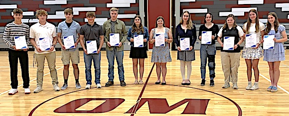 Watkins Glen High School honorees. Front from left: Natalee Oliver, Skye Honrath, Emily Melveney, Olivia VanSkiver and Kendra Fish. Back from left: Nick D'Alleva, Sam Hohle, Sam Caslin, Zade Gomez-Fitzsimmons, Rachel Vickio, Brianna Hatch and Carson Thaete. (Photo by Jon Haeffner) The Tribute 24 Awards Twenty-four outstanding student-athletes at the Watkins Glen and Odessa-Montour High Schools have earned the attention and admiration of school officials and The Odessa File. Here are the 2025 Tribute 24 Award honorees. By Charlie Haeffner SCHUYLER COUNTY, May 31, 2025 -- Four years ago, after stepping away from a high school student honors team called the Top Drawer 24 -- a program which I had co-founded and in which I'd been heavily involved for 15 years -- I returned to its roots with a new program. While the Top Drawer program had expanded over the years to include more than a dozen school districts, I wanted to focus -- as we had in the early days of Top Drawer -- strictly on Schuyler County student-athletes. Each of the honorees -- at recent ceremonies at O-M and WGHS --received a packet containing certificates from The Odessa File, Schuyler County Administrator Shawn Rosno, New York Assemblyman Phil Palmesano, State Senator Tom O'Mara and Congressman Nick Langworthy to commemorate this selection. Grade-point averages cited are the most recent ones available.