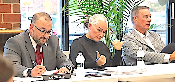 From left: Watkins Glen Superintendent Kai D'Alleva, GST BOCES Superintendent Stacy Saglibene, and Bradford Superintendent John Marshall at meeting. Watkins, Bradford School Boards meet, discuss the possibility of consolidation BRADFORD, Oct. 14, 2025 -- A preliminary discussion of the possibility of consolidating the Watkins Glen and Bradford School Districts was held Tuesday evening when the two districts' School Boards and superintendents met in the Bradford School cafeteria.