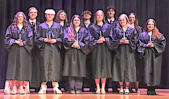 Joining the chapter were Matthew Bain, Isabella Bellavigna, Caleb Bresett, Elizabeth Fitzwater, Isaac Hendrickson, Aidan Kelly, Emma Lewis, Aurora Scott, Natalie VanSkiver, Grace Weed and Michaela Wheaton. Each was introduced by an existing member of National Society. They include Sam Hohle, Zade Gomez-Fitzsimmons, Emily Melveney, Gillian D'Alleva, Marcus Delong, Olivia King, Michael Purpura, Wendy Coleman, Ryan Dean, Carson Thaete, Erin Snow, Anna Franzese and Rachel Vickio. Sam Hohle, president of NHS, served as emcee, with remarks from the Chapter Advisor, Mrs. Courtney Foss.
