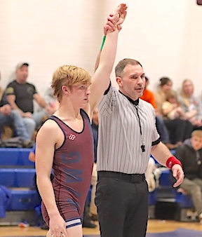 Hoffman was 3-0, defeating Logan Bellis of Tioga by Medical Forfeit in the finals after earning victories by fall in the quarterfinals and semifinals. Watson (3-1) earned a Major Decision Victory, 13-1, over Jackson Velez of Deposit Hancock in the third-place match after dropping a 5-1 decision to eventual champion Anthony Weaver of Windsor. Also earning a podium finish was Patrick Croft (215 pounds), who finished fifth at 2-2.