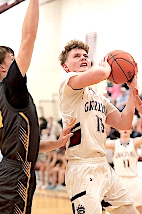 Bottom: The Lake Hawks' Caleb Bresett sends a long-range shot on its way.