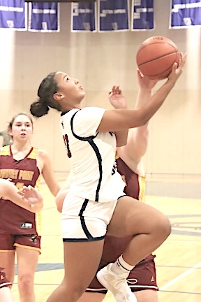 Left: Watkins' Olivia King shoots. Center: The Lake Hawks' Zade Gomez Fitzsimmons looks for a shot in traffic. Right: Watkins' Lizzi Fitzwater at the free-throw line.
