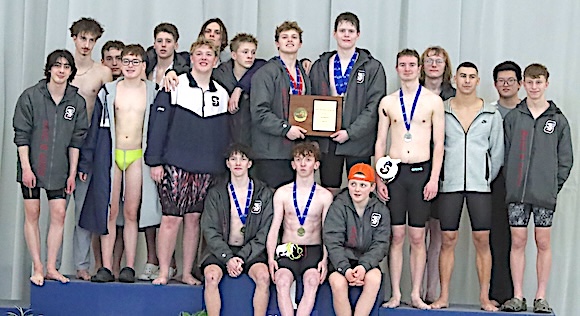 WATKINS GLEN, Feb. 14, 2026 -- The Schuyler Storm boys varsity swim team successfully defended its Section IV, Class C title Saturday by defeating a half-dozen other teams in the Watkins Glen High School pool.