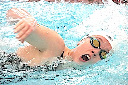O-M won the first game, 768-725, but lost the second (794-751) and third (772-692) along with total pinfall (2301-2211). Breyden Seamon led the Grizzlies with a 546 series that included a 208 game. Perry Navestad added a 444, and Braidyne Wilson a 436. Girls: Odessa-Montour has just one bowler, Abbey Grady, who rolled a 292 series as Lansing won 4-0. Photo in text: O-M's Perry Navestad reacts after leaving some pins standing on a spare attempt early in the second game. Fish 22nd at States in 100 Back, with PR WEBSTER, Nov. 22, 2025 -- Schuyler Storm 8th grader Makenzie Fish set a personal best while finishing 22nd Saturday in the 100 Backstroke at the New York State Public High School Athletic Association Girls Swimming Championships at the Webster Aquatic Center.