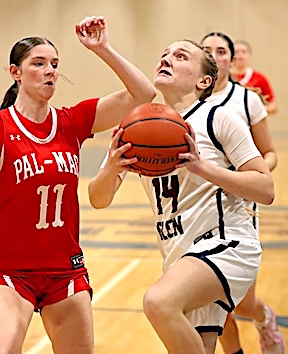 But the Lake Hawks finally pulled away from Pal-Mac in the closing minute to win the tourney title, 37-34. The key shot was a Rachel Vickio 3-pointer with 38 seconds left that broke a 32-32 deadlock -- a basket that she followed up with two free throws with 14 seconds to go. A last-second Pal-Mac two-pointer cut Watkins Glen's winning margin to three. After falling behind 12-2, the Red Raiders had closed to within 20-17 at halftime. Watkins scored the first five points of the third quarter for a 25-17 lead, but Pal-Mac scored the next five points and entered the fourth quarter down 27-22. The Lake Hawks (5-1) saw that lead evaporate as the Raiders edged ahead 30-29 before Watkins Glen's Emma Cady drained a 3-pointer for a 32-30 Lake Hawks lead. Pal-Mac tied the game on two free throws with 47.2 seconds left, setting the stage for Vickio's heroics. Olivia King led Watkins Glen scorers with 10 points, while Vickio finished with 8. Natalee Oliver and Emma Cady each scored 6 points, Lizzi Fitzwater 5, and Michaela Wheaton 2. The Lake Hawks sank 11 of 19 free throws, while Pal-Mac sank 9 of 15.