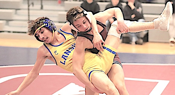 The Storm's Lucas Hoffman lifts his Lansing opponent at 126 pounds. Hoffman won. Storm wrestlers defeat Lansing, 58-12 ODESSA, Jan. 7, 2026 -- The Schuyler Storm (Odessa-Montour and Watkins Glen High School) wrestlers posted a 58-12 victory Wednesday night over Lansing in an Interscholastic Athletic Conference match in O-M's Jack Davis Gym.