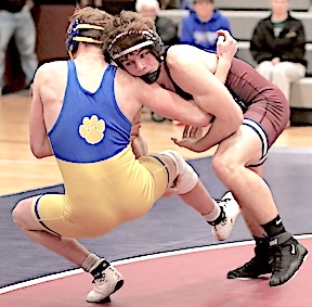 The Schuyler Storm's Dalton Smith, right, takes control on the way to a win at 132.