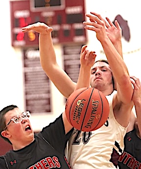 "We ran into a skilled team that took advantage of some of our defensive lapses," said O-M Coach Tanner Dupuy. "We played better than what the score shows. "We will move on and prepare for Edison on Wednesday in the Cufari Tournament, which we won last year." That game is scheduled for 6 p.m. at Union Springs High School. Photo in text: O-M's Moe Zinger, left, fights for the ball. (Photo by Gail Sgrecci)