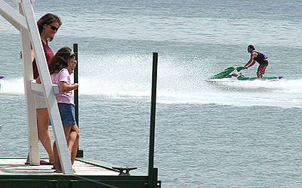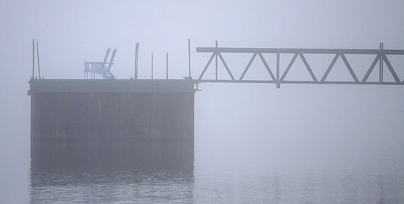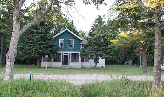 The Hoover dock on the southwest corner of the Island was visible Wednesday morning, but nothing could be seen beyond it. ****** And earlier: It's Island time again ... By Charlie Haeffner Odessa, July 2, 2010 -- This is the time of year when I venture away from Schuyler County for a few weeks -- laptop in hand so I can still update this website with press releases, columns, photos, obituaries and the like -- and visit my Island. Well, the Island's not all mine. I have a bit of property there, but it's mostly state-owned. Bois Blanc Island, it's called -- a 5-by-12-mile piece of rock in Michigan's Straits of Mackinac. I've written about it here before; it's a place I loved in childhood and rediscovered 15 or so years ago. I travel there every summer to recharge my spirits and my energy. It is a place I've written about in books, too -- in four of them, to be exact, although it only played a passing role in the last book, a limited-issue production called The Maiden of Mackinac. I have a very small fame on the Island as a result of those books -- an occasional reader appreciates my written love for the place because he or she shares that feeling. I've encountered very polite folks who've wanted me to pose with them for a photo, and -- in one case -- a gushing fan who treated me like I was a rock star. Most people, though, keep to themselves on Bois Blanc, which is a large part of its charm. We can congregate as a society at Hawk's Landing -- the Island's lone convenience store, which doubles as a restaurant -- or for game nights on Tuesdays at the Coast Guard Chapel, a converted Coast Guard boathouse out on the east end. Or there is an occasional square dance at the Hoover Building, a structure donated to the Island folks by the family of the late Earl Hoover, the former head of the Hoover Vacuum Cleaner firm. And there are religious gatherings on Sundays throughout July and August at both the Coast Guard Chapel and the Church of the Transfiguration. The latter is in Pointe aux Pins, or The Pines, the lone Bois Blanc municipality, located on the island's southwest corner. It was there in The Pines, one day back in the '90s, when I reconnected with a trio of important people from my childhood. It was early in my annual midlife sojourns to the Island, and in fact I had come ahead of the rest of my family in order to honor a fallen friend. Forty years had passed, but the memories hadn't dimmed.. ******* One of the three people was Sally Babler, married name Sperry, with whom I used to paddle around that southwest point on a makeshift raft when we were 6 or 7 years old. I think we were Tom Sawyer and Huck Finn. Anyway, I lost touch with her over the years, but knew she was still a summer Islander. Her family had roots there that stretched back eight decades. This particular meeting, this reunion with Sally, took place at the Church of the Transfiguration -- at a memorial service for a man named Morgan Poole, who had been a family friend. I was listening patiently to the eulogies when a middle-aged woman walked to the pulpit to expound about Morgan's attributes and eccentricities. I glanced at her -- and didn't recognize her until she spoke. Even in childhood, there was what I call a smoky quality to Sally Babler's voice; it has a low timbre to it, very distinctive. And this woman at the pulpit had that same quality. I had cast my eyes downward, reading the service program, when she started speaking, and I looked up in wonder -- and saw through the years the young girl with whom I had played. And I smiled. After the service, I caught up to her just as she was getting into her car in a nearby parking lot, and told her how much I had liked her remarks. She glanced at me and thanked me, and continued to climb into her vehicle. I stopped her with a comment about how her voice hadn't changed in 40 years. She stopped then, and studied me, and finally asked: "Who are you?" "The name," I said, "is Haeffner. Charlie. You knew me as Chuck." She smiled warmly then, and got out of the car and gave me a hug, and we chatted, and she suggested I visit her sister Marilyn, who had been at the service, too -- though I hadn't noticed her -- and had already left. Marilyn's cottage was one I knew well -- it had, in fact, belonged to the Babler girls' grandmother in my childhood years. Marilyn was a bit older than me, but someone who knew well the Haeffner name, since she had hung out during Island summers in her youth with a crowd that included my older brother Bob. Her parents -- hers and Sally's -- were in fact friends of my parents before we ever visited the Island, and they had encouraged the Haeffner clan to try Bois Blanc's charms. That was in the early 1950s. The initial visit led to another, and another ... until the late 1950s, when my parents built a house alongside a lake in southeastern Michigan, negating the need for the Island. ******* I drove to Marilyn's cottage, parked in front, and saw a woman on the porch who was obscured by the screen and the shadows -- and I wondered if it might be Marilyn. Then, thinking she looked too young, I called out: "Excuse me, but is Marilyn here?" The woman -- in her 20s, as it turned out -- turned and bellowed through the front door: "Mom! Someone to see you!" I walked to the porch door and was admitted by the young woman just as Marilyn -- still beautiful in her 50s -- came from the interior of the cottage to the front door, cell phone to her ear, a man stationed behind her. She looked at me and asked rather brusquely: "Yes? Who are you?" I took a step nearer her -- and was about a yard away when I answered. "My name is Chuck Haeffner," I said softly. Marilyn shrieked -- the force knocked me back a step -- and tossed the phone over her shoulder, where the man (her husband) caught it. She grabbed me then, and hugged me, and wanted to know, in a rush of words, what I was doing there, and where was I living, and how my mother was ... ... And that was my double reunion
