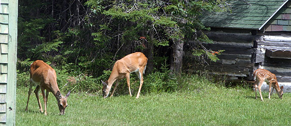 - Large Div. South ****** And earlier: Deer forage for food in the backyard of the Bois Blanc rental cottage. A visit from native Islanders... By Charlie Haeffner Bois Blanc Island, Michigan, July 21, 2010 -- A trio dropped by to visit at my rental cottage Tuesday: a couple of grown deer along with a fawn.