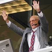 I finally warmed to Harwell in 1963. That was the first year that major league third baseman Bubba Phillips played for the Tigers -- coming to the squad from the Cleveland Indians through a trade. Bubba was an acquaintance of my family, and as such provided me and my friends with free tickets to Tigers games. A couple of those friends and I were at Tiger Stadium early one day in 1963-- well before the start of an afternoon game -- hoping to chase down a ball or two hit into the stands during batting practice. While wandering about on the third base side of the lower deck, we heard a voice call out from somewhere above. "Hello, boys!" the voice said, and we looked around for the origin of the sound, which had come from up to our right. That's when we spotted Ernie Harwell, leaning out of the press box fronting the stadium's second tier on the first base side. Harwell waved and yelled again. "Hello, boys!" he repeated, and we giggled and waved back. It was but a moment, but it has lasted in my memory all these years. It struck me then, and still does, as a symbol of the kindness in the man. And I was forevermore a fan. So when Ernie died this past May 4th -- on what would have been the 100th birthday of my father (who had died at 84) -- I found myself shaking my head. The juxtaposition of a meaningful centennial observance and the passing of a meaningful childhood icon was all too evident. Therefore, as I sat reading Ernie's obituary, I couldn't help thinking about my father and his tennis abilities and his shoe boxes, and I smiled at the memories. And I thought about Ernie Harwell leaning out of that press box, waving and calling to me and my friends. And I found myself answering him these many years later. "Goodbye, Ernie," I said softly. Then, silently, I added this wish: "Godspeed. And please, say hello to my father." Let's all recall
