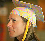 She received a certificate and had her name placed on a plaque for her efforts -- efforts that began in earnest in January. The award was engineered by Catholic Charities, which has a hand in the 21st Century after-school program at the Middle School. (For a clarification of the originof the award, see Forum.) Jordan, daughter of Brian and Connie Mathers DeMeritt, took up her cause -- creating and selling the bracelets to raise money for the fight against cancer -- upon the suggestion of her grandmother, Nanny, but also out of a need to do something in the face of a disease that claimed a 4-year-old cousin named Javier and her mother's cousin Joanne Mathers Fitch (a personal friend of mine who was in her 40s), and has struck another, teen-aged cousin. Jordan made bracelets before all of this, she said, but not for sale or for a cause. But now they pack a double wallop: they are symbolic of the need to fight the scourge of cancer, and they are practical in raising funds toward that end. "She's worked really hard at it," said her father after the Middle School Awards presentation. "She's put in a lot of time and effort."