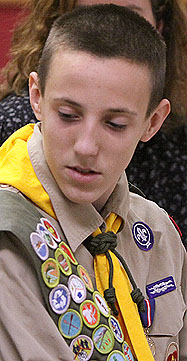 ***** Adam, a senior at Watkins Glen High School, earned his Eagle rank last year after achieving a community-minded project: a new Clute Park sign alongside the park office on Fourth Street in Watkins Glen. Check it out: it's a work of beauty. Adam's a serious guy -- a good student, an exceptional swimmer, captain of the school's cross-country team, and a member during the last school year of the Top Drawer 24 team of scholar-athlete-citizens sponsored by this website.