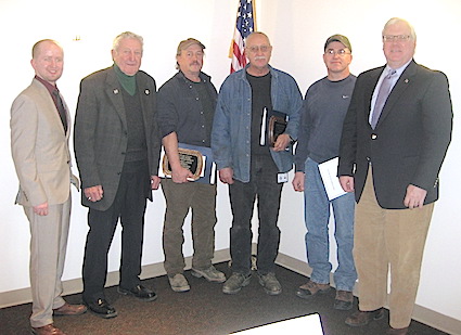 at annual meeting Highway Department workers Austin, Thorpe also receive awards Special to The Odessa File WATKINS GLEN, Feb. 16, 2015 -- The Schuyler County Soil and Water Conservation District (SWCD) held an Annual Luncheon at the Watkins Glen Elks Lodge #1546 on Friday, Feb. 13, where accomplishments -- made possible with the help of many municipalities, the county, the Chemung County Soil and Water Conservation District, and other local agencies -- were reviewed for an audience of 80. Three awards were also presented: --The Conservation Farmer of the Year Award to Karen and Rick Reisinger, owners of Reisinger’s Apple Country, in Dix;