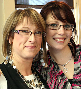 Pictured: Nail technician Jamie Powers, left, with model Chelsey Marusarz at a recent photo shoot at the salon.