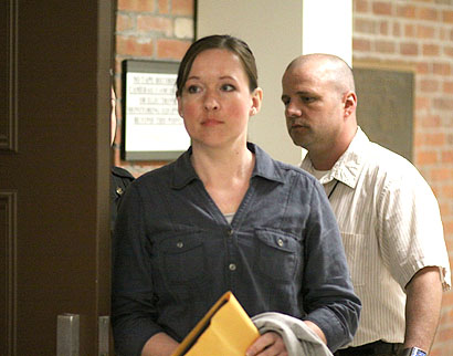 Police officers came in and took their accustomed spots in the rear of the courtroom, and various personnel from county offices came in. This trial had been going on for weeks, and seemingly everyone who worked in the building had at least a portion of their attention pointed in the direction of the courtroom. Finally, with everyone in place, the jury was released from the jury room and filed across to their seats. Each had a prescribed seat, determined left to right by order of selection. The first juror selected, an elderly woman, was the foreperson, and it fell to her to answer County Judge Dennis Morris when he asked if they had reached a verdict ("Yes, your honor") and then "How say you on the first charge, Murder in the 2nd Degree?" -- and so on through all of the counts, including two different felony burglary charges and one of Conspiracy, 2nd Degree. Each time, the foreperson said, simply, "Guilty." When she was done, the judge asked the jurors as a group, count by count, if these were the decisions they had made, and they all nodded in agreement. Alice Trappler sat, impassive, at the defense table. Her attorney, Susan BetzJitomir, was looking at the jury, a slightly surprised expression on her face. Judge Morris asked if BetzJitomir wanted the jury polled, and after a moment's consultation with her client, she said no. The judge then said: "The court will record the verdict. Thank you for your service in this trial." He added that the jurors were released from their prohibition on talking about the case to others, saying such discussion would be "up to your discretion." "Now you are excused," he said. "You may take your items and leave the courtroom if you wish."