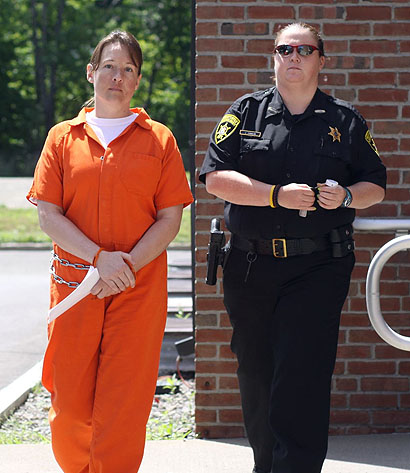 "They didn't understand the instructions," she said. "They call it jury misconduct, not that they did anything wrong." She said that argument was in the brief submitted to the court two weeks ago. "We were hopeful the judge would have agreed," but he didn't, said BetzJitomir: "He's the judge and he can do that." Trappler "expected this," BetzJitomir said of the maximum sentence. "She understands she's legally guilty, and was expecting the worst while hoping for the best." After sentencing, Trappler was led downstairs and through a hallway -- past the media -- to the Sheriff's Department. Later, she was led outside to a waiting van, and secured inside. The van pulled away, turned left on 10th Street and then right on Decatur, heading south toward Elmira and the Chemung County Jail. From there Alice Trappler would be processed into the state prison system. Photos in text: From top: Alice Trappler after sentencing; Alecia Bennett, who read a statement in court; DA Joe Fazzary; Trappler being led from the Sheriff's Office to a waiting van; defense attorney Susan BetzJitomir. Alice Trappler enters the van for transport back to the Chemung County Jail. ***** The Story from Day 1 may be found by clicking here. The Story from Day 2 may be found by clicking here. The Story from Day 3 may be found by clicking here. The Story from Day 4 may be found by clicking here. The Story from Day 5 may be found by clicking here. The Story from Day 6 may be found by clicking here. The Story from Day 7 may be found by clicking here. The Story from Day 8 may be found by clicking here. The Story from Day 9 may be found by clicking here. The Story from Day 10 may be found by clicking here. The Story from Day 11 may be found by clicking here. The Story from Day 12 may be found by clicking here. The Story from Day 13 may be found by clicking here. The Story from Day 14 may be found by clicking here. (All court stories by Charlie Haeffner)