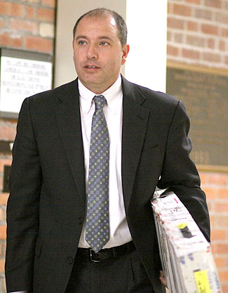 At 8:40 p.m. on the 19th, Besley said, there was another text between him and Trappler, though he couldn't remember who initiated it. "She asked if I was afraid to go and testify -- if I was going to back out." And, he said, she asked where Bennett was living. "I told her (he was) on Pearl Street with his Dad and talking about leaving." Besley said he had still been planning to testify in Family Court the next day, but that on the morning of that day, April 20th, he received a call from Trappler that was "real brief. She said court was canceled." That call was between 6 and 7 a.m., he added. She didn't say anything about Bennett's death; he learned about it a short time later when told by a friend. He said he texted Trappler "around noon" and asked if she knew about the death. "Four or five" hours later, he said, Trappler responded with a text that read: "Hi Jeff. How are you?" At some point thereafter, he added, he talked to her on the phone, and "I brought up about Danny. She said she felt bad for Frank (Bennett's father). She seemed calm, real collected about the whole thing" and told him investigators had been out to see her and would be "coming to talk to me." 6. Richard Brunt, of the New York State Forensic Investigation Center in Albany, a DNA analyst and hair evaluator. He studied several items to determine if there was any blood on them. He examined the shotgun shell casing found near Daniel Bennett's body, three live shells discovered along Catlin Hill Road a half-mile away, and the shotgun used in the slaying. All were negative. 7. Laurie Pasqualino of the New York State Forensic Investigation Center, who examines "items of evidence to develop DNA profiles." She analyzed the shotgun, ammunition, and a pair of cuttings from the sneakers discarded by Thomas Borden in Pinnacle State Park after the murder. She was working with DNA control samples from Borden, Nathan Hand and Daniel Bennett. As for the gun, she said: "No, there was no profile from any swabs from the gun." The shells had partial profiles, but "they were insufficient to compare to any control profile." The left sneaker, however, yielded enough information to rule it "was consistent with the DNA from Borden." 8. Amy Crosier, a New York State Police Investigator and computer crime specialist who conducts "cell phone, smart phone and computer extractions." She said she "received and analyzed" a smart phone that was owned by Trappler and a cell phone that had belonged to Daniel Bennett. She extracted information from Trappler's, but not from Bennett's since it had been soaked in blood. The Trappler phone, she said, carried the phone number 215-235-2762 previously mentioned in other testimony. Fazzary said there were two calls after 9:10 p.m. on April 19, 2012 that were "more important than the others." He pointed to one in Verizon records from Thomas Borden to Trappler that said "Call me now," and one at 9:38 p.m. that referred to the cell towers being "traceable." "Were they anywhere on this phone?" Fazzary asked. "No, sir," said Crosier. 9. Allison Regan, a New York State Police Investigator assigned to the computer crimes unit in Canandaigua. She analyzed two phones seized from the residence being shared by Trappler and her mother, and "also Thomas Borden's phone." She also examined a computer from Doug Gross Construction, where Trappler had been employed. The Trappler phones were the same ones Crosier had examined, but were "re-examined for supplemental data" after the Canandaigua investigatory system was upgraded, Regan said. The thrust of her testimony was that she found four photographic images of Daniel Bennett on the computer and on one of Trappler's phones. But not on Borden's. Regan said she had encountered Trappler before, when Regan was working out of the State Police Painted Post barracks and Trappler was trying to get Bennett charged in connection with a dispute that had resulted in some damage on Trappler's goat farm. "She asked me if I knew a Dan Bennett," said Regan. "She said he was a bad person, that she had some concerns and was trying to keep him from having anything to do with their child." Next up: Testimony resumes Monday. Fazzary plans to wrap up the presentation of his case on Wednesday. BetzJitomir thinks her case will take two days after that. Photos in text: Top: Defendant Alice Trappler leaving court Thursday. Second: Defense Attorney Susan BetzJitomir. Bottom: District Attorney Joe Fazzary after Thursday's session. He is carrying a box holding the weapon -- a .12-gauge shotgun -- that was used to kill Daniel Bennett.
