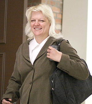 After she knew she was pregnant, Trappler said, she awakened early one morning between 5:30 and 6. "I don't know why," she said, "but Dan woke up angry ... loud," making verbal accusations. "Things progressed to him shoving things around, busting things," and then to "a verbal argument. He called me a lot of names. I wanted to leave ... he pushed my head and face into a pillow and kept calling me terrible things." But she got free, reached her car and left the property. A safe distance away, she called police "and asked for their assistance. This was a place I didn't want to be." She said that was one of three times in which Bennett had gotten physically abusive with her. On one occasion, she said, she was "injured, where I was sore and bruised." She didn't seek medical attention, but said her mother noticed the bruising. After the last incident, she got an order of protection. On the matter of guns, she said she ordered one, a .22 caliber Ruger pistol, from a gun shop in Knoxville, Pa. in 2011. Before that, Brett Bacon had "loaned me, offered me, a .20 gauge long gun." And he eventually presented her with a .12 gauge "short shotgun," ultimately the weapon that was used to murder Bennett. "Did you ask for it?" she was asked. "No," she said. She eventually decided to move to her mother's house not long before Lily was born. One reason: "The (goat ranch) house wasn't livable in time for her arrival. It was fine for camping, but I didn't feel it was appropriate for a baby." Trappler at first had the guns at her mother's, but what with visits by Borden's two daughters and the pending arrival of her baby, Trappler said she moved the shotguns to the goat ranch. "Did there come a time when you noticed (the .12 gauge) was missing?" she was asked by BetzJitomir. "Yes." "Before or after the murder?" "After. I still had goats and cats" on the goat ranch, and would "go to change the litter pan. I did this the Monday after Dan Bennett was shot and killed. I noticed it was no longer in the corner with the other one," the .20 gauge. "Before you were arrested," her attorney said, "did you know what had happened to that gun?" "Absolutely not." BetzJitomir referred to audio tapes of phone conversations Trappler had with her parents while incarcerated in the Chemung County Jail shortly after her arrest. Several conversations showed the defendant anxious to speak to Brett Bacon -- urging her parents to arrange a talk. "Did that have anything to do with that shotgun?" BetzJitomir asked. "Absolutely," said Trappler, explaining that she wasn't sure it was "a lawful weapon." "I didn't know if he had come and gotten it or if something else had happened to it," she said. In addition, someone with whom she had had a relationship "was shot. I had a possibly unlawful weapon. Brett had full access to the ranch and could've gotten it. But I was concerned someone else might have taken it "After everything that happened and what happened at the train" -- a reference to Borden's death; and here she choked back a sob -- "I reasonably thought (Borden) might have taken it." Why did she think that? "Because he knew where it was; I had told him." **** BetzJitomir asked Trappler if she and Borden had ever talked about the children, Chastity and Autumn. "Always," she said, the subjects being "their school, their health, their safety." It was on the basis of that safety, she said, that she moved the guns to the ranch. "The location of the firearms was part of the safety conversation with Mr. Borden?" she was asked. "Yes." When asked about the Acknowledgment of Paternity document signed by Borden, she said she saw nothing wrong with it; that they had followed instructions on the back of it. She was then asked if she had been seeing Brett Bacon in the time leading to the April 20th hearing. "Yes." "And Thomas Borden?" That "wasn't more than friendship." "Were you intending to get back with Thomas Borden?" "No," said Trappler, "not at that time. We had discussed the possibility before," but "he was seeing other people." Trappler further testified that she had seen the subpoenas for Jill Dann and Frank Bennett handed to Borden in the office of Attorney Christine Valkenburgh by an office worker named Carol. Borden, she said, was going to serve them. But serving Frank Bennett posed a potential problem, she said, because she knew Daniel was living with his father. If Daniel was there when the subpoena was served, a fight might result. "Dan was a fighter," she said, and Borden would probably fight if so engaged. To pin down Daniel Bennett's whereabouts, she said, she contacted Jeff Besley, a Bennett friend, and learned from Besley that Bennett had been fishing -- although that later proved untrue. However, she texted the message to Borden, she said -- one of many texts attributed to her in the prosecution's evidence. Later that day -- which was the day of the murder -- Trappler said she was in contact with Borden in the evening. He had texted her, telling her to call him, and so she did. She was still concerned, she said, about a run-in between Bennett and Borden, and "called him off," telling him not to serve the subpoena. "I told him to go home and not serve it." Another text shows her saying to Borden that they should stop texting because "towers traceable?" That, she said, was in response to a conversation she had had with Borden, "to something he said. He said ..." Here Fazzary objected, one of several objections with which he had peppered BetzJitomir's direct examination. Moments later, Judge Morris, after a sidebar, ended the day's session. ***** Photos in text: Top: Defendant Alice Trappler is led back to jail after Thursday's court session. Second: District Attorney Joe Fazzary heading back to his office after court Thursday Third: Defense attorney Susan BetzJitomir speaks to the media Thursday.