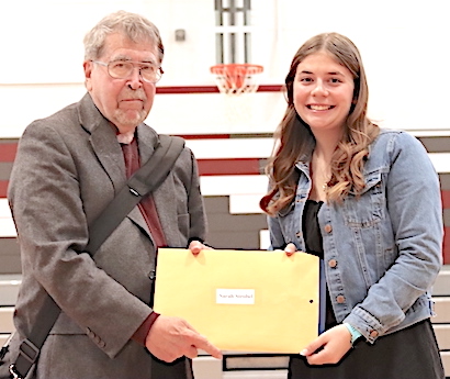 Natalee Oliver: A junior with a 3.57 GPA, she is an Odessa File All-Star in three sports: soccer (where she is an All-State defensive player), basketball, and track -- where she recently won the 800 Meter Run at the IAC Championships and set a school record in the 1500 Meters at the Section IV, Class C meet. A member of Varsity Club, and a volunteer at Saturday morning youth basketball, she is undecided on which college to attend, but is planning to become a nurse. Says her basketball coach, Alicia Learn: "Natalee's remarkable speed and relentless hustle on the floor make her a standout performer; she’s always in the right place, putting in extra effort to ensure every play counts. Natalee celebrates the success of her teammates as much as her own, firmly believing that the collective triumph is the greatest reward." Added her soccer coach, Scott Morse: "Natalee Oliver is a hard-working and dedicated athlete. She has worked hard to increase her speed over the years and that has made a huge impact on the team and our success."