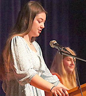 Top: Students Sarah Jones (at microphone) and Anna Franzese (background) were instrumental in organizing the awards assembly.