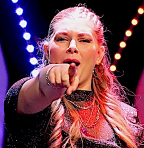 Left: Nick Brusso sings "How Great Thou Art." Right: Natalie VanSkiver sings "Burn" from "Hamilton."