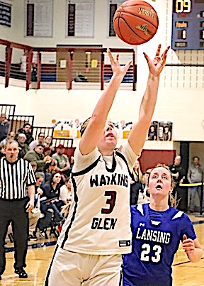 Rachel Vickio led Watkins Glen scorers with 13 points, grabbed 7 rebounds, and registered 3 steals. Olivia King scored 11 points, grabbed 10 rebounds, and had 6 steals.