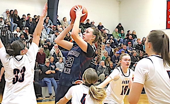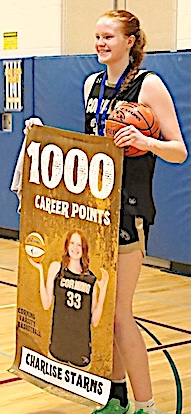 Each contest had a spectacular individual performance. In the girls game, junior Charlise Starns matched her uniform number with 33 points, passing the 1,000-point career mark. And in the boys game, sophomore Nolyn Proudfoot scored 48 points in a game that was close through the first quarter before the Hawks pulled away in the second quarter.