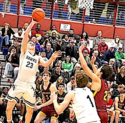 It proved to be a big night for the Corning-Painted Post Hawks, winner in both the girls game (58-48 over two time defending champion Elmira) and the boys game (90-68 over Ithaca for the Hawks' second straight title).
