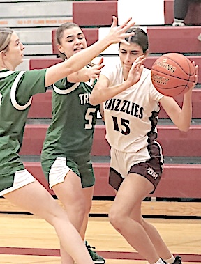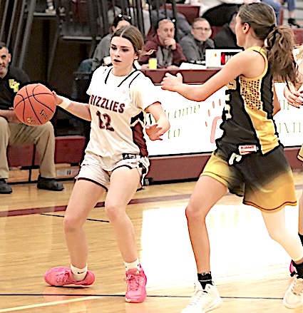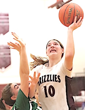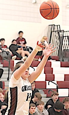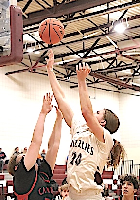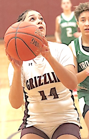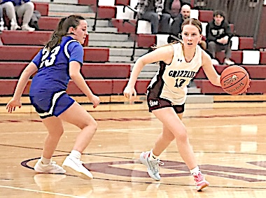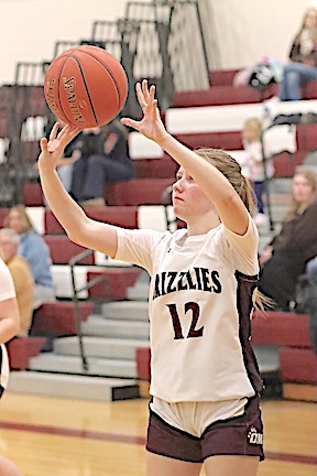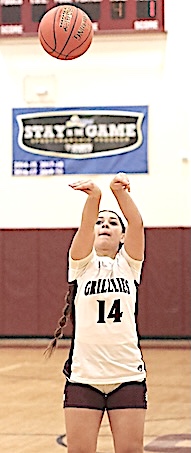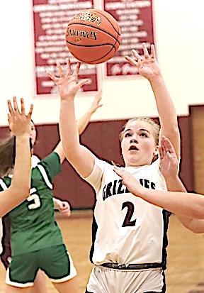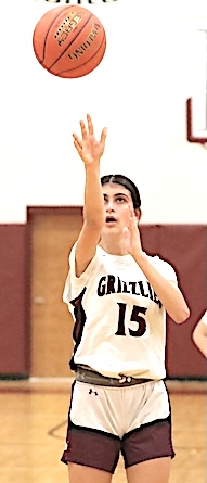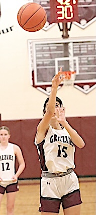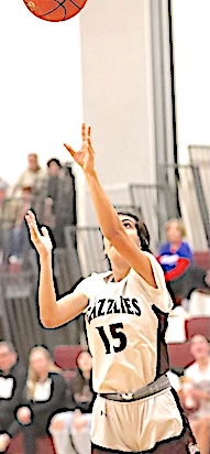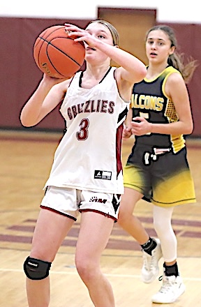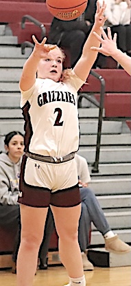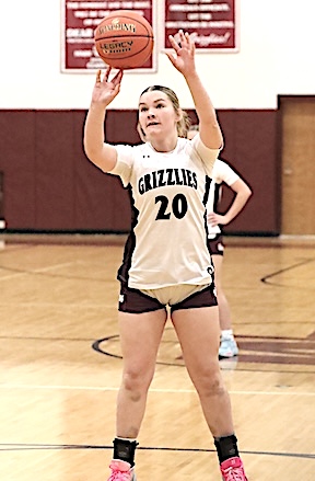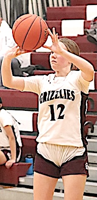 Left: O-M's Reese Rounds shoots. Right: The Grizzlies' Aspyn Skinner takes aim. O-M girls JV team falls to S. Seneca