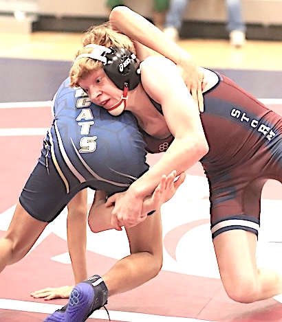 The Schuyler Storm's Dalton Smith, right, takes control on the way to a win at 132.