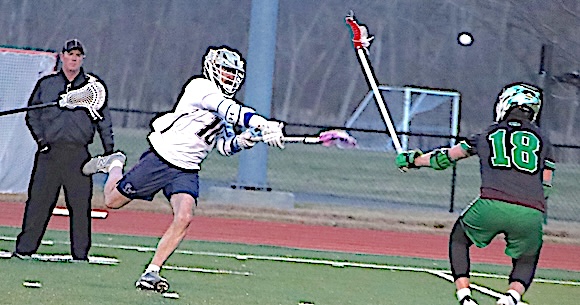 JOHNSON CITY, April 2, 2026 -- The Watkins Glen/Elmira Notre Dame varsity lacrosse team dropped an 8-7 decision to Johnson City Thursday night after rallying from a 7-5 deficit to tie the game. JC scored the game-winner with 27 seconds left on the clock.