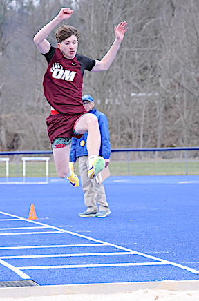 Girls: O-M's Leah Antes posted wins in the Long Jump (14'11"), High Jump (4'8") and Triple Jump (31'11"), while first-place finishes were also registered by McKenzie Landon in the 200 (in 31.2), Aspyn Skinner in the 100 (in 14.4), and Janne Anderson in the 400 Hurdles (1:11.1).