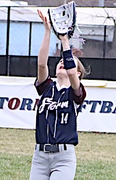 Bottom: The Storm's right fielder, Sydnee McCormick, prepares to haul in a Lansing fly ball. The Storm played errorless ball.