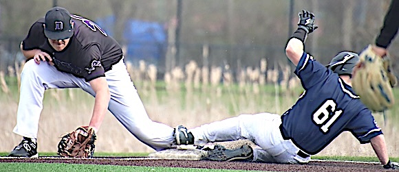 The team had just four hits, but was aided by eight walks and four Dryden errors. The hits came from Nicolai Holmes, Hunter Mowry, Connor Foggie and Isaak Willett -- each of them driving in at least one run. Foggie had 1 RBI, and Holmes, Mowry and Willett two each. Austin Preuninger also had 2 RBIs.