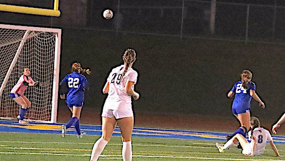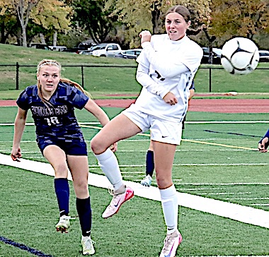 "In the second half, we got more comfortable and were able to take advantage of some terrific passing to score. Michaela Wheaton and Ava Kelly continue to be able to fight through double coverage to score up front. Olivia King was really strong in the midfield as well. Our defense and goalkeeping were outstanding again this game, securing the shutout. "I am really pleased with how we are playing right now, but it will be quite a challenge on the road at Oneonta on Wednesday in the sectional semifinals." Photos in text: Top: Watkins Glen's Erin Snow keeps her eye on the approaching ball.