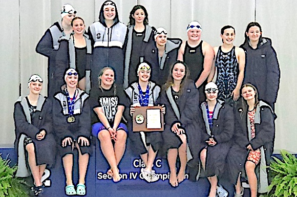 The Section IV, Class C champion Schuyler Storm squad poses after its victory. Storm swimmers win Section IV title Melveney, Fish, Emerson lead squad to 9th straight Class C crown