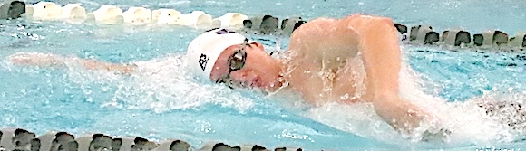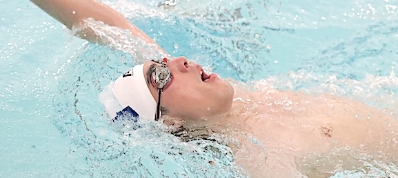 "The boys swam an outstanding meet today," said Storm Coach Jason Westervelt about his squad. "We had some fantastic mid-season time drops and amazing finishes." Top finishes for the Storm included the following: 200 Medley Relay: 3rd, Ryan Dean, Grayson Robertson, Carson Thaete, Alex Walters. Photo in text: The Schuyler Storm's Ryan Dean competes in the final of the 200 IM.