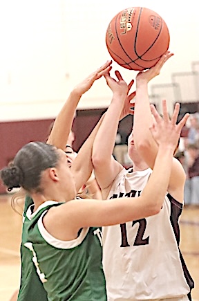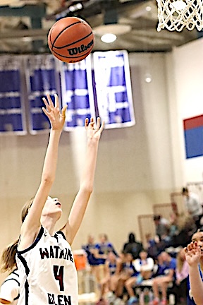 Left: Watkins Glen's Rachel Vickio shoots for two of her eight points. Right: The Lake Hawks' Emma Cady delivers a lay-up. Watkins girls defeat Trumansburg, 46-32