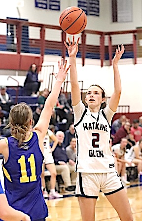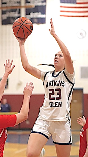 Watkins Glen's Emma Cady puts up a shot late in the championship game. Glen girls edge Pal-Mac for title, 37-34
