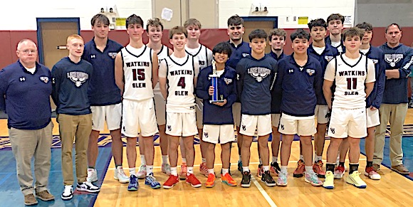 The Holiday Tournament champion Watkins Glen team poses after its victory. Watkins Glen boys top Marcus Whitman, 62-38, in Holiday Tournament title game