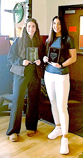 Aaron Sutton and Moe Zinger led the Grizzlies with 11 points each. Other points came from Zach Smith (5), Kayden Garrabrant (4), Hunter Mowry (3), Connor Foggie (3), and Caleb Malnoske (3). The team converted 4 of 10 free throws. "We came out flat from the beginning, lacking a bit of intensity, but picked it up with a solid second quarter to cut the Addison lead to 7 at the half," said O-M Coach Tanner Dupuy. "We created a lot of great opportunities but couldn't find the basket, missing some easy layups. "We will turn things around and find the balance that we need to start clicking as a team. It's just staying confident in each other and the process as we move through the season." Junior Varsity: Addison defeated Odessa-Montour 59-40. The Grizzlies will play in the consolation game at 1 p.m. Tuesday. 2 join Lake Hawks Weightlifting Hall WATKINS GLEN, Dec. 23, 2025 -- The Watkins Glen Lake Hawks Weightlifting Hall of Fame has added two new members to its roster of honorees. Hall creator and advisor Ralph Diliberto made the announcement, describing the achievements of the two inductees. Courtney Foss. "Courtney graduated from Watkins Glen High School in 2009," said Diliberto. "She acquired her certification K-12 Physical Education from SUNY Brockport; she also received her personal training certification from NASM -- the National Academy of Sports Medicine. She integrates her knowledge of strength and conditioning throughout the Physical Education classes that she teaches at Watkins Glen. Courtney educates her students about nutrition, and how to achieve a healthy lifestyle, so that her students will experience the benefits of a good physical and mental outlook that hopefully will carry them for the rest of their lives. She is the school's Wellness Club advisor, and its National Honor Society advisor. Courtney's concern for the health and welfare of her students is apparent; and she leads by example." Photo in text: Gillian D'Alleva, left, and Courtney Foss. (Photo provided) Bowling: Glen boys, girls fall to Lansing LANSING, Dec. 22, 2025 -- THe Watkins Glen High School boys and girls varsity bowling teams dropped 4-0 decisions to Lansing Monday in Interscholastic Athletic Conference road matches. Boys: The Lake Hawks, minus three starters, lost all three games by a combined 2629-1916, Kristofer Burke led Watkins with a 511 series, while Mark Fabrizi posted a 436, and JP Tremblay a 422. Girls: Watkins, with just three bowlers, dropped all three games by a combined 1746-805.