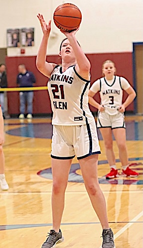 Left: Watkins Glen's Olivia King shoots. Right: The Lake Hawks' Lizzi Fitzwater at the free-throw line.