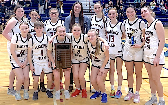 The 4-1 Lake Hawks thus advanced to Sunday's tourney final at 4:30 p.m. against Palmyra-Macedon, which defeated Lyons 61-42. The title game will be preceded by a varsity consolation game at 3 p.m. between Marcus Whitman and Lyons. Watkins Glen raced out to a 20-5 first-quarter edge, and led 27-10 at halftime and 39-16 entering the fourth quarter. Olivia King led the Lake Hawks with 15 points, while Rachel Vickio scored 12, Emma Cady 8, Michaela Wheaton 4, Lizzi Fitzwater 4, and Isabella Bellavigna, Emma Lewis and Grace Roney 2 apiece.
